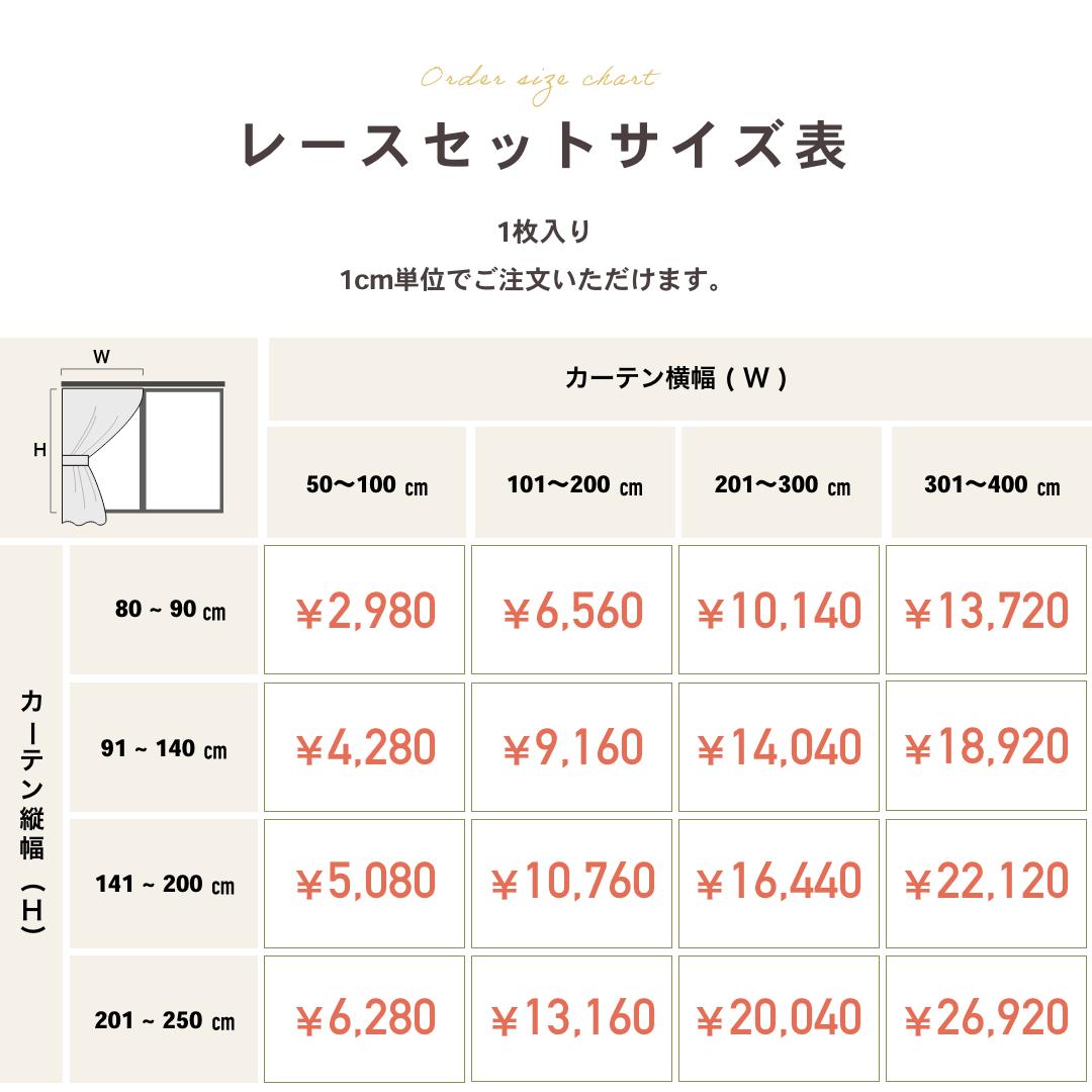 ※ご希望のカーテンのサイズにより価格が変わります。
