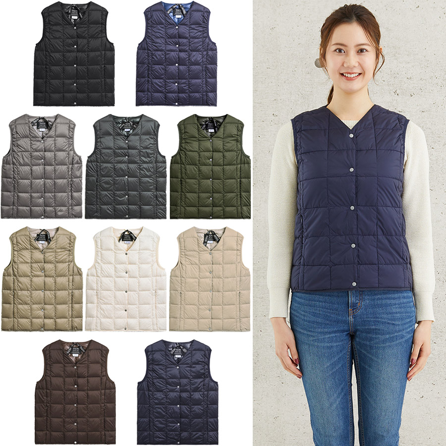 TaionのVネックボタン インナーダウンベスト、W001。