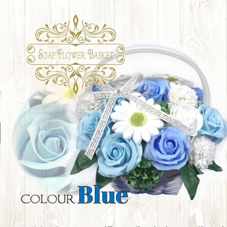 ギフト ソープフラワー 花 花かご バラ L ブルー フラワーギフト 花籠 卒業式 卒園式 卒園 入学 退職 結婚 送別 入学 入園式 父の日