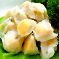 刻んだ生ねぎを練りこんだタラのすり身に、少し固めで味も濃厚なチーズを包みました。