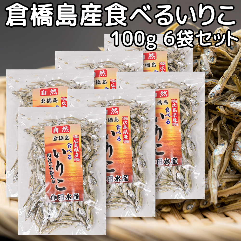 倉橋島産食べるいりこ 100g 6袋セット 送料込み 作田水産 煮干し 国産 だし 出汁 おやつ そのまま食べれる