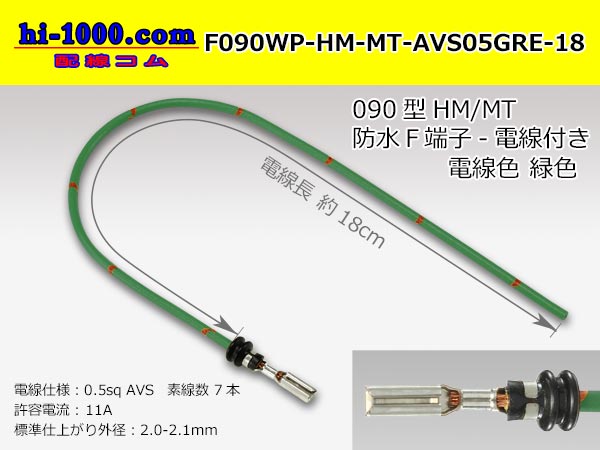 住友電装090型HM・MT防水シリーズFターミナル-AVS0.5[緑色]電線付き/F090WP-HM-MT-AVS05GRE-18