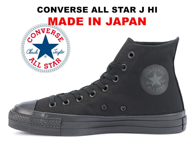 残り22.5 23.0 23.5 24.0 24.5cm 日本製 コンバース オールスター J ハイカット ブラックモノクローム キャンバス レディース スニーカー 限定 オールブラック