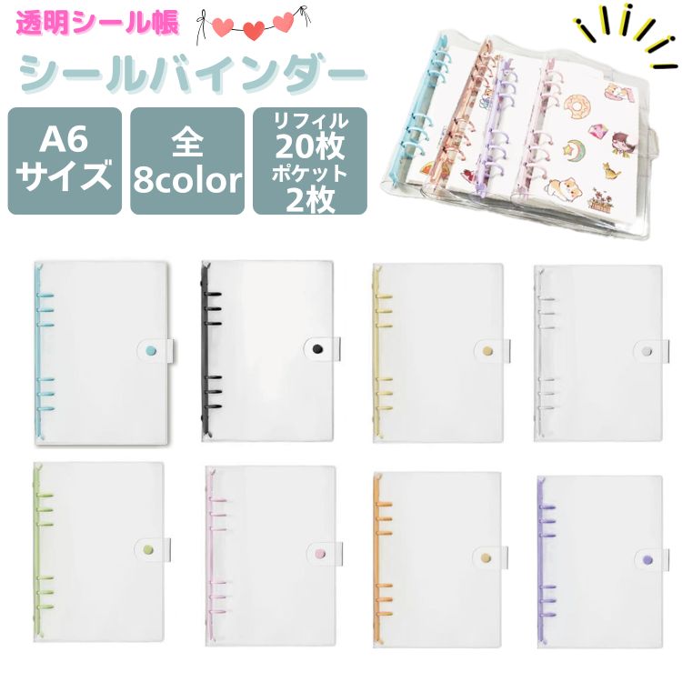 シール帳 シールバインダー A6 シール交換 透明 リフィル 20枚 ポケット2枚 プリクラ帳 シール 女の子 男の子 平成女児 可愛い クリア