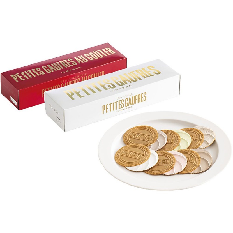 バニラ、ストロベリー風味、チョコレートのクリームをサンドしたプティ―ゴーフルと紅茶、抹茶、コーヒーのクリームをサンドしたプティ―ゴーフル・オ・グーテのセットです。 誕生日プレゼント 結婚祝い 出産祝い 内祝い 退職祝い 長寿祝い 入学祝い 就職祝い 記念品 に!