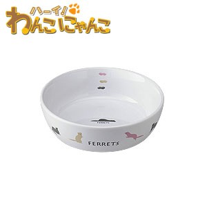 スタンダードな丸型食器にフェレットのかわいい仕草をデザインしました。