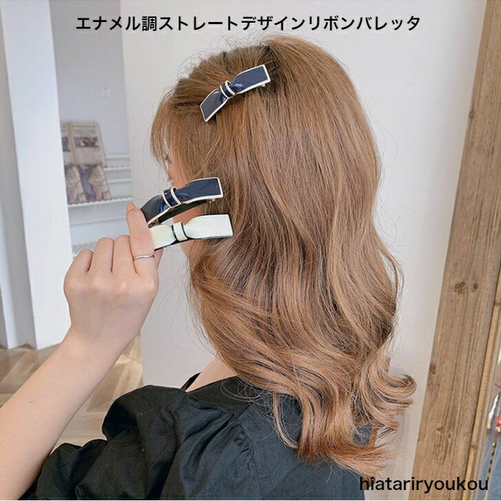 バレッタ エナメル調ストレートデザインリボンバレッタ ビッグ&スモール 20代 30代 40代 50代 プチプラ かわいい 大人 お出かけ アクセ