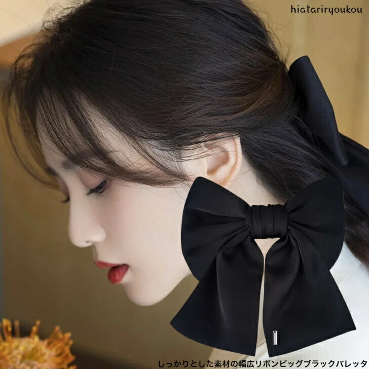 バレッタ しっかりとした素材の幅広リボンビッグブラックバレッタ 送料無料 20代 30代 40代 50代 プチプラ パーティー 上品 高級感 大きい