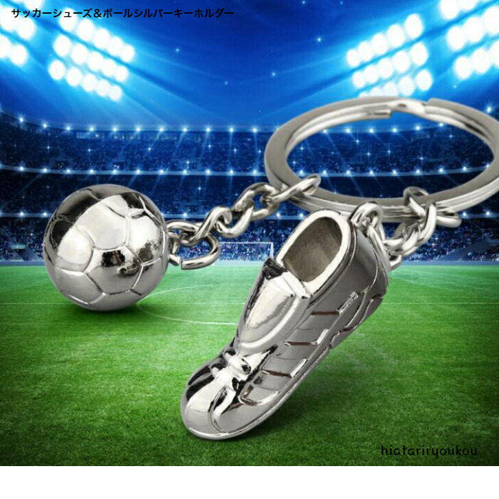 キーホルダー サッカーシューズ&ボールシルバーキーホルダー・キーリング クラブ 部活 バッグチャーム プレゼント スポーツ サークル