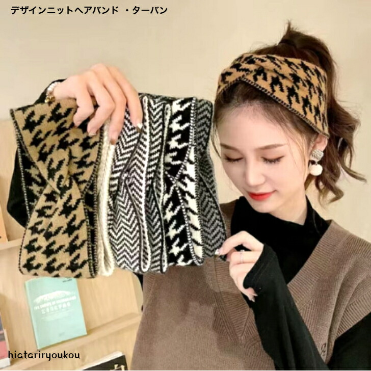 ヘアバンド 千鳥格子デザインニットヘアバンド・ターバン 送料無料 大人 かわいい スタイリッシュ まとめ髪 プレゼント おしゃれ レディース
