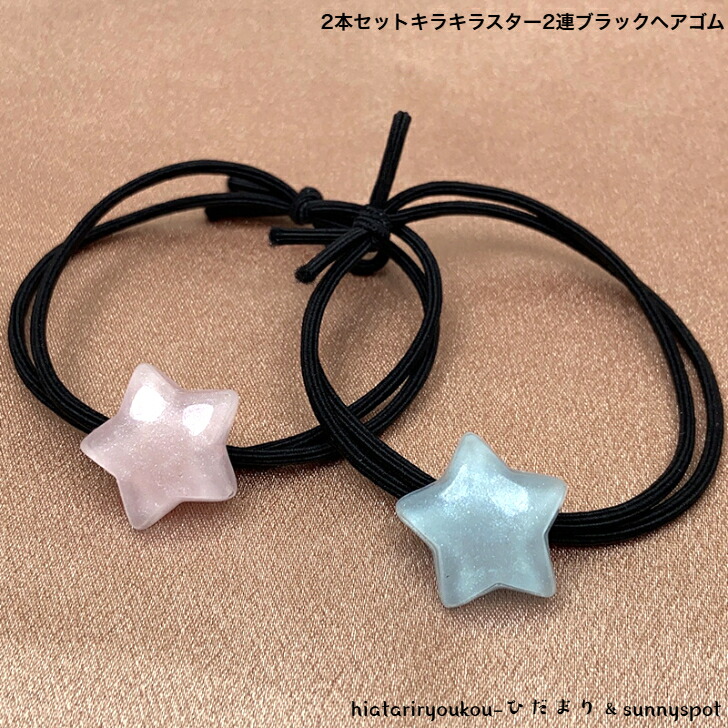 ヘアゴム 2本セットキラキラスター2連結びブラックヘアゴム 新発売セール かわいい ヘアアレンジ ヘアアクセ 星 丈夫 プレゼント B