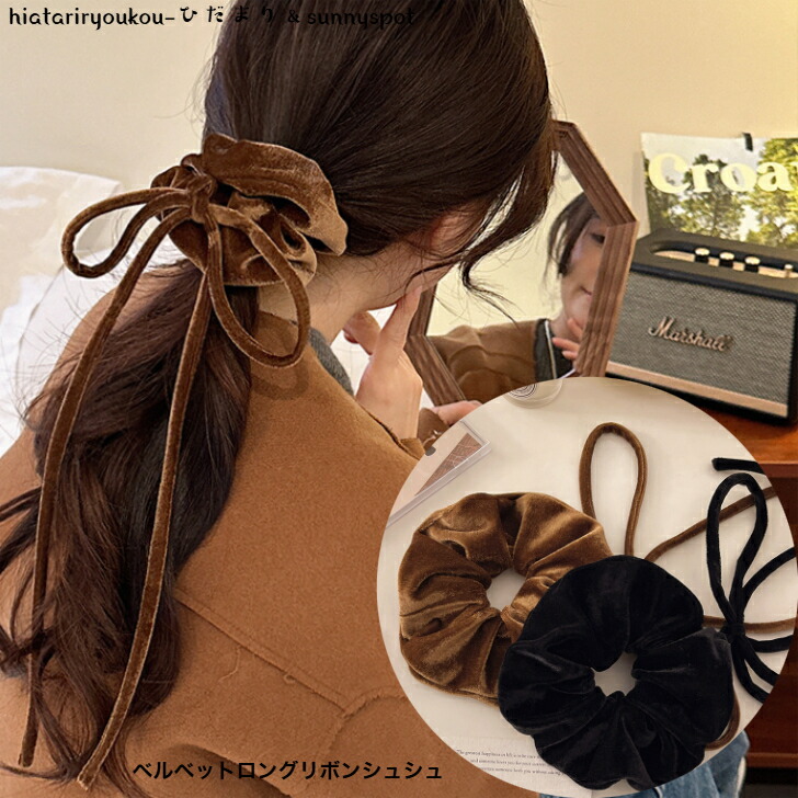 ベルベットロングリボンシュシュ