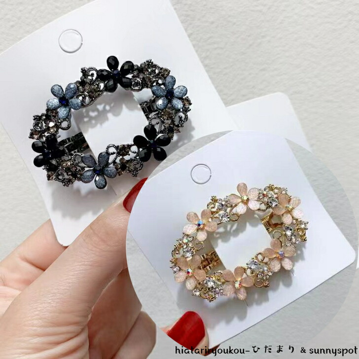バレッタ クリスタルフラワーデザインオーバルバレッタ 新発売セール 大人 かわいい パーティー 結婚式 高級感 花 プレゼント H