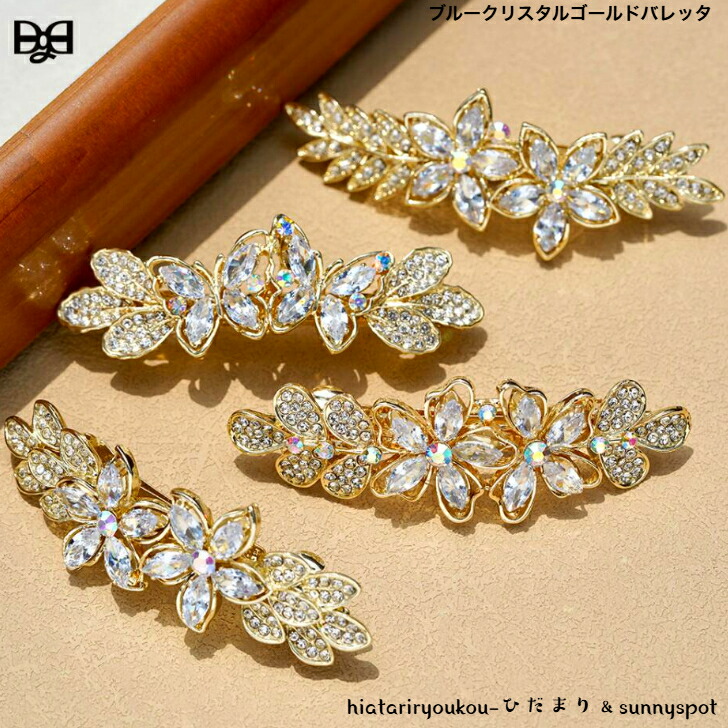 バレッタ ブルークリスタルゴールドバレッタ 新発売セール 大人 かわいい ちいさめ パーティー 透明 ヘアアレンジ 結婚式 プレゼント