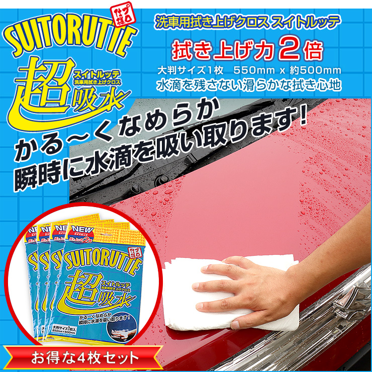 爆買 (洗車用拭き上げクロス)スイトルッテ 4枚セット 超吸水 水滴を残さない滑らかな拭き心地