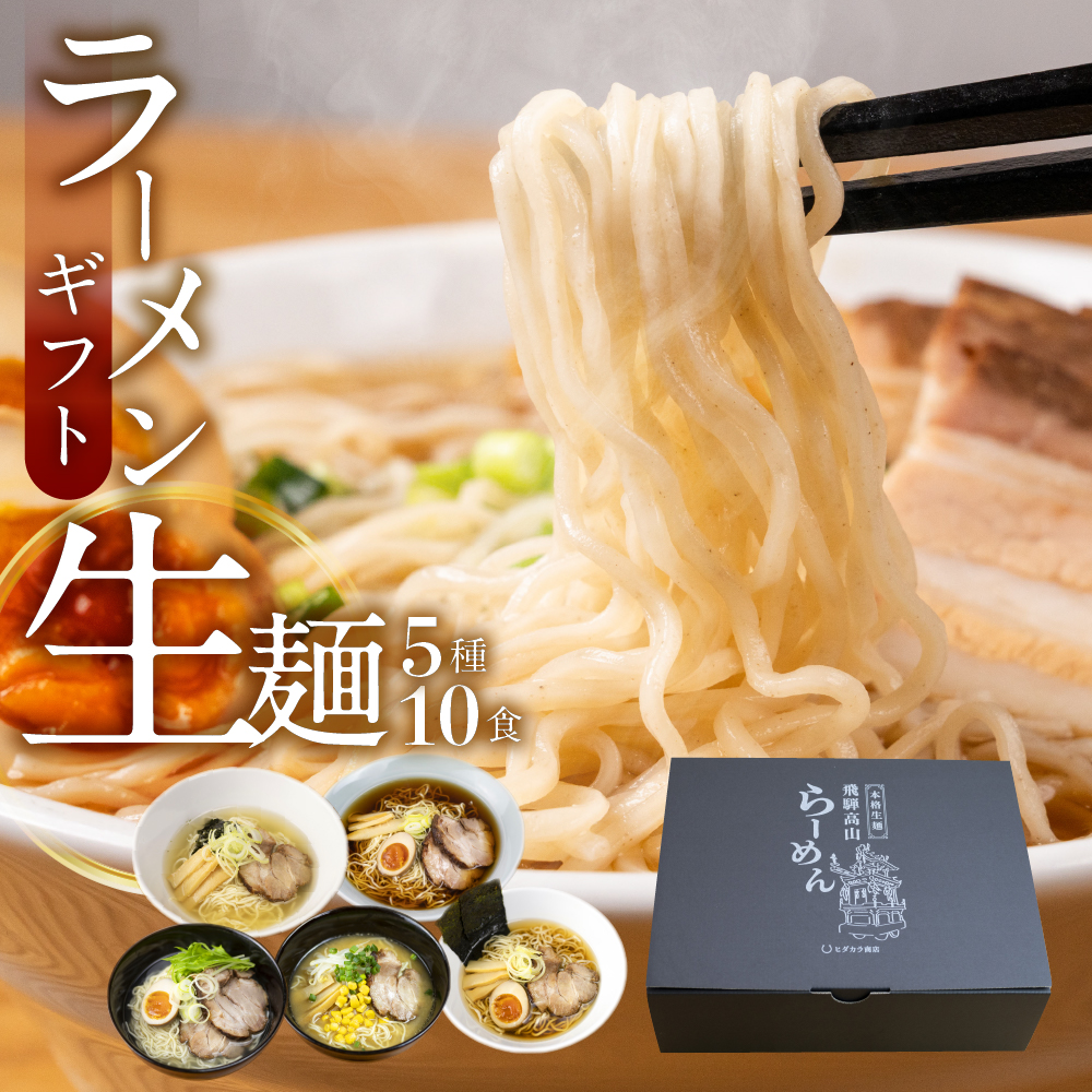 | 飛騨高山らーめん醤油味×2食 飛騨高山らーめん朴葉味噌味×2食 飛騨塩こうじらーめん×2食 麺屋しらかわ中華そば×2食 淡麗だしらーめん×2食 5種類 計10食 ※スープと麺がそれぞれ2袋ずつ入っています。 |