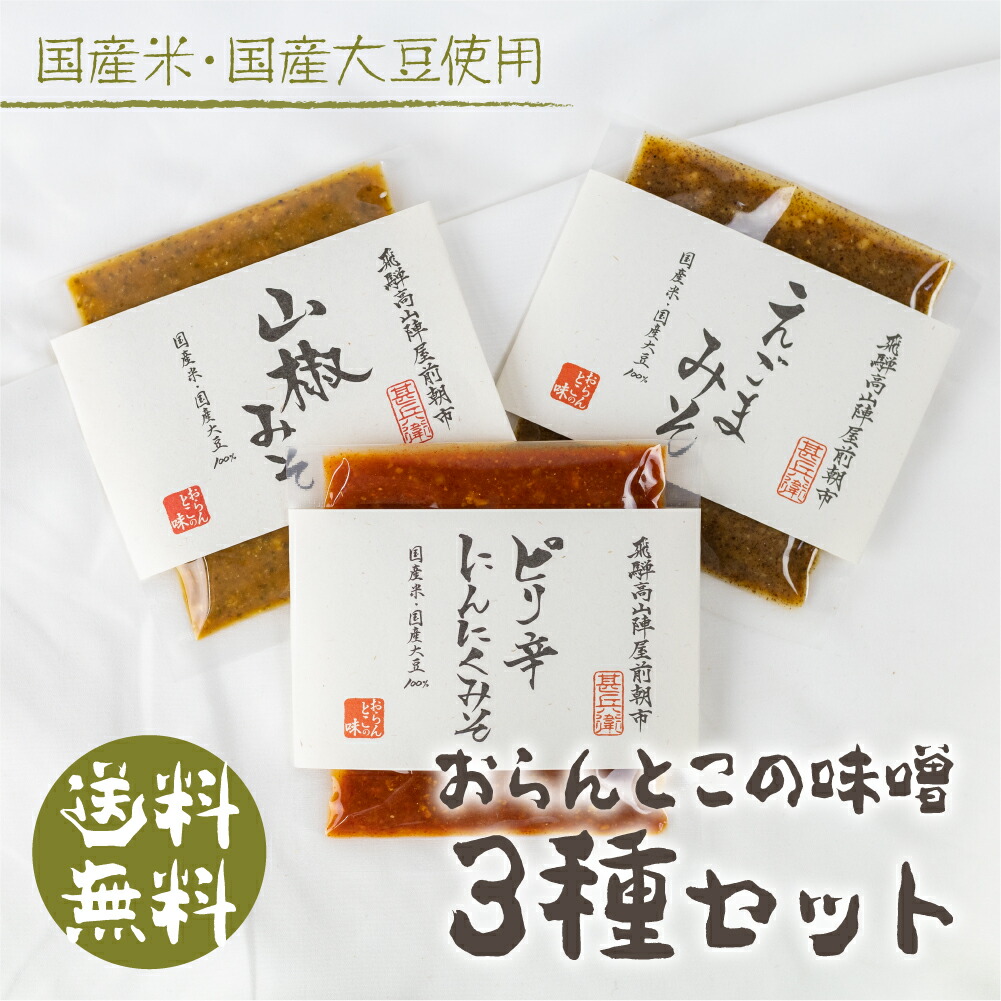 おらんとこのみそ 味噌詰め合わせ 3種セット えごま味噌 山椒味噌 ピリ辛にんにく味噌 味噌ソムリエ 手作り ご飯のお供 おかずみそ ディップ お米 大豆 えごま あぶらえ 山椒 ニンニク 唐辛子 発酵食品 おつまみ 送料無料