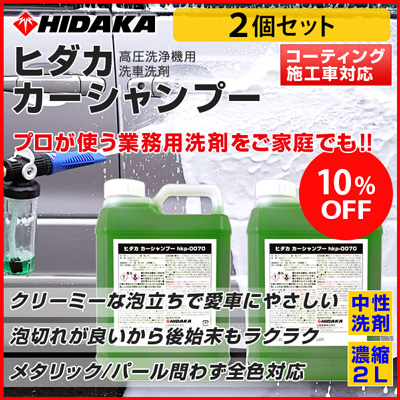 内容量 | 2L(2000ml)x 2本 ※「高圧洗浄機・フォームランスプラス・ヒダカカーシャンプーを使用する洗車の仕方」ご案内書付き |