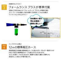 さらに標準付属品にして欲しいとリクエストの多かった「フォームランスプラス」もお付けし、使い勝手の良い高圧洗浄機となっています。
