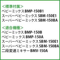 適合機種 | ベビーミックス BMP-150B1・BMP-150B・BMP-150A スーパーベビーミックス SBM-150E1・SBM-150BA・SBM-150E1・SBM-150BA 2段変速ミキサー BMV-150A ※BMP-150B1・SBM-150E1・SBM-150BA標準付属品 |
