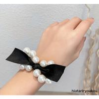 ヘアゴム リボン付きパールデザインぷくぷくブラックヘアゴム