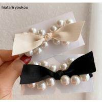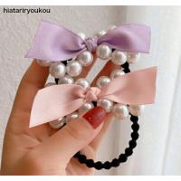 リボン付きパールデザインぷくぷくブラックヘアゴム