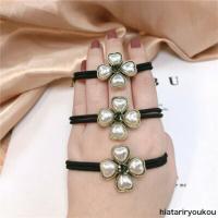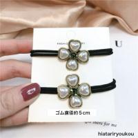 パールとラインストーンのアンティーク調メタル2連結びブラックヘアゴム