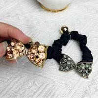 シュシュ 大粒ラインストーンアンティークリボンデザインブラックシュシュ