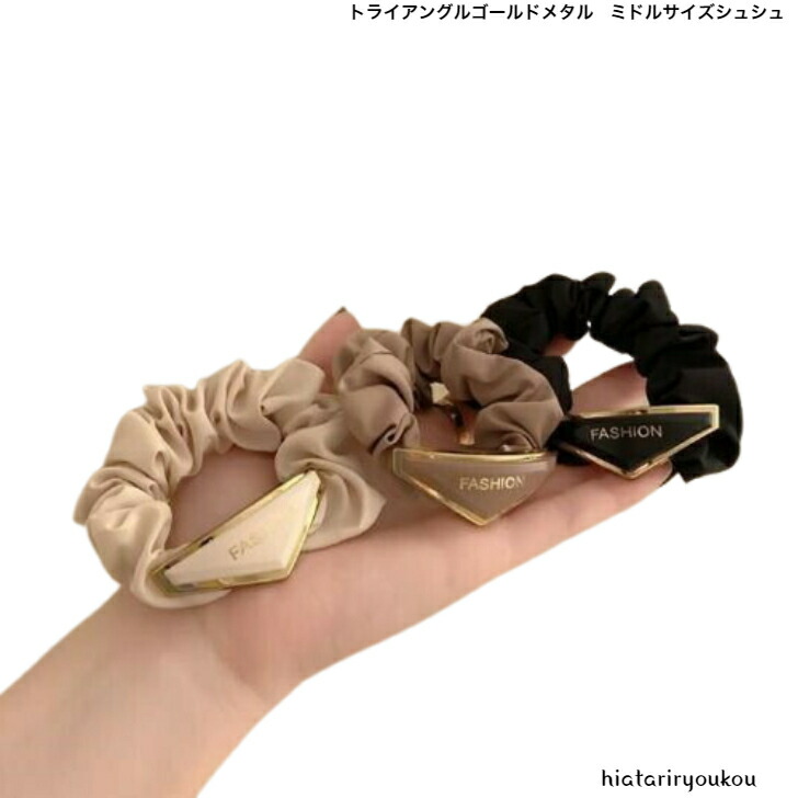 シュシュ トライアングルゴールドメタルプレートミドルサイズシュシュ