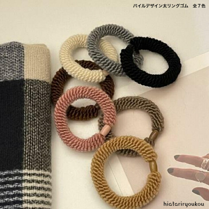 ヘアゴム パイルデザイン太リングヘアゴム 全7色 ヘアアレンジ 太め 跡がつきにくい ヘアアクセ プレゼント レディース