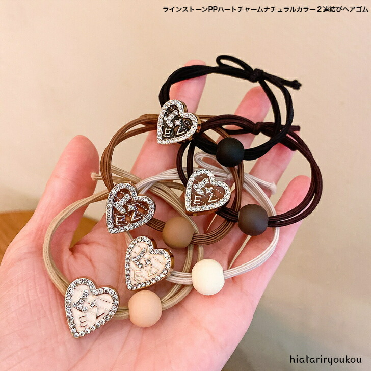 ヘアゴム ラインストーンハートチャームPPナチュラルカラー2連結びヘアゴム