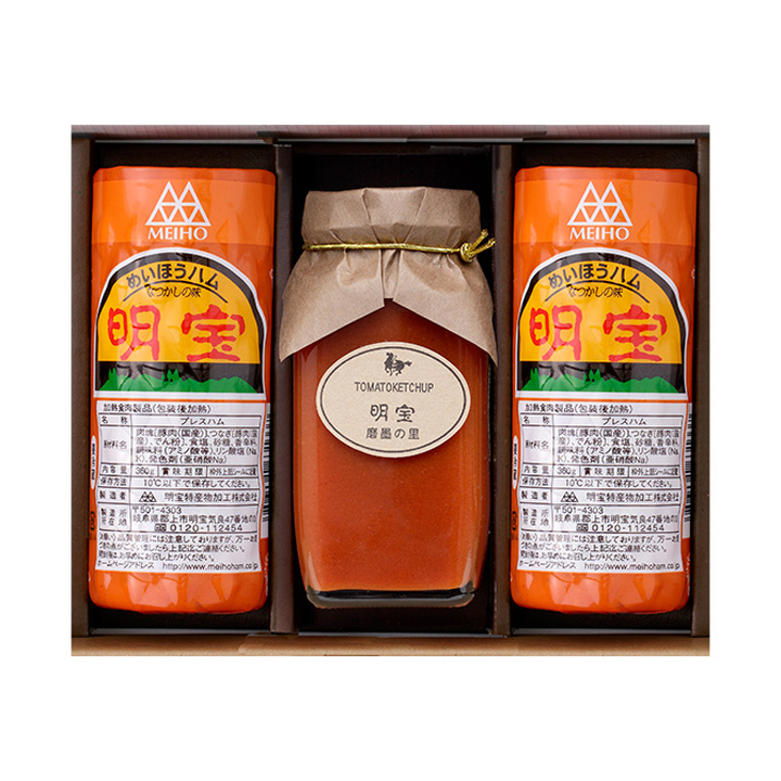 | 明宝ハム(360g)×2本 ケチャップ(280g)×1本 |
