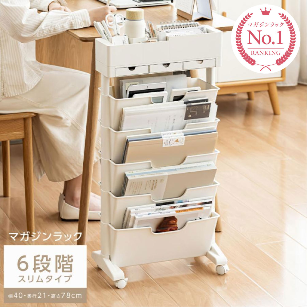 timesale マガジンラック ファイルワゴン キャスター付き 6段 ★ランキング1位★スリム デスク収納 収納棚 収納ラック 本棚 ワゴン オフィス リビング 雑誌収納