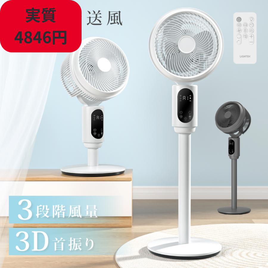P10倍 扇風機 3段階風量 3D首振り リビング扇風機 サーキュレーター 高さ調節 パワフル リモコン付き 自動OFFタイマー 空気循環 静音 xr-ht16