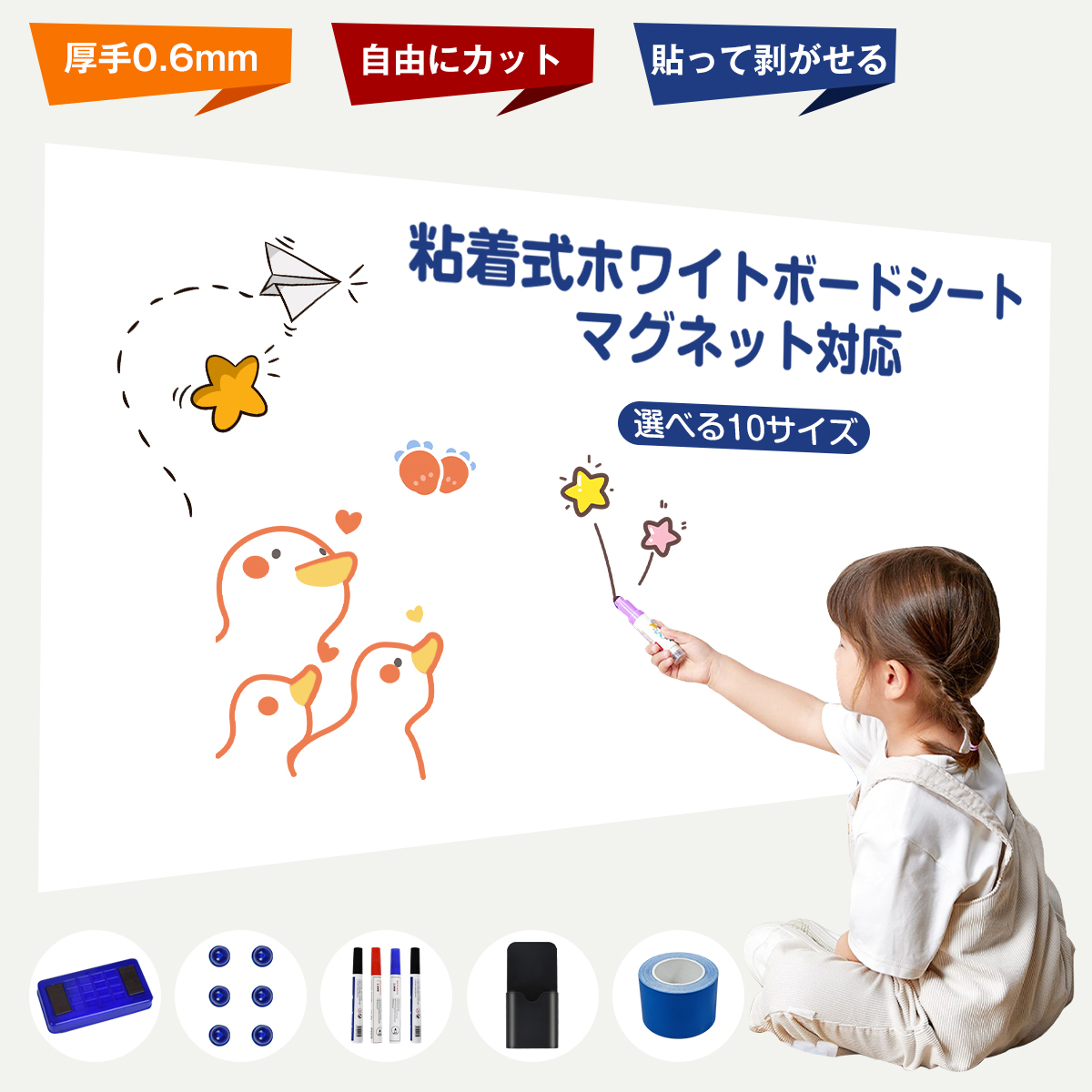 ホワイトボード シート マグネットシート お絵かきボード ホワイトシート マグネット対応 粘着式 壁に貼り付け 自由に裁断 予定表 こども落書き 掲示板 メモー