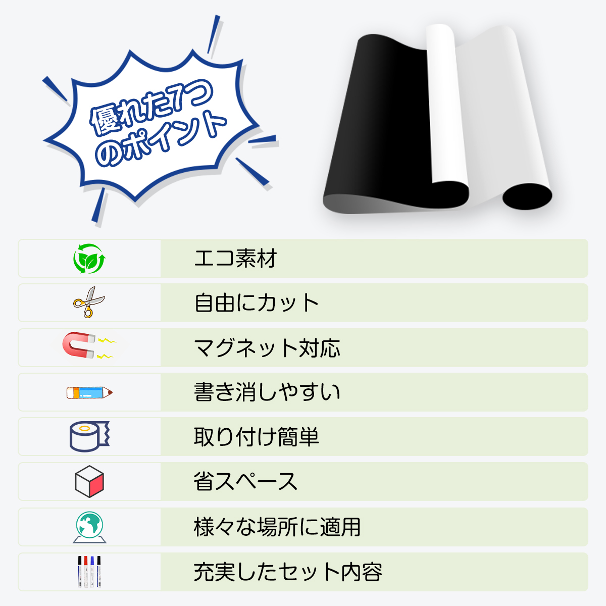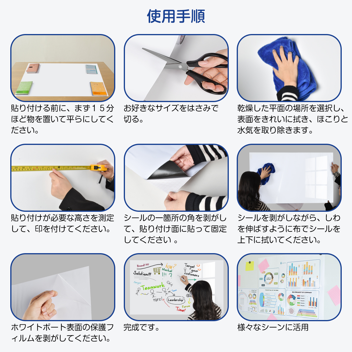 8.白板紙の表面に保護膜がありますので、剥がしてからご使用ください。