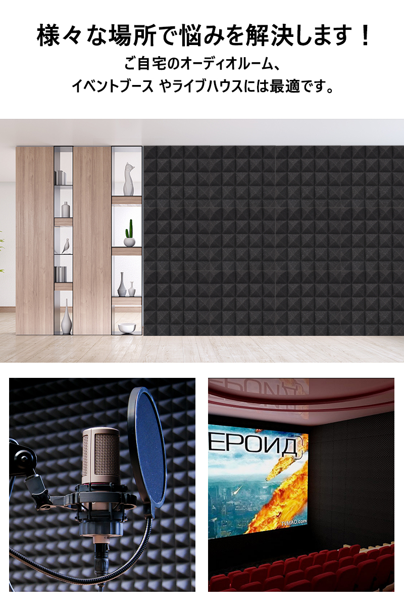 3.録音スタジオや宅録ブースなどの吸音材として、過剰な音波を減衰させてより良い録音効果を得るため