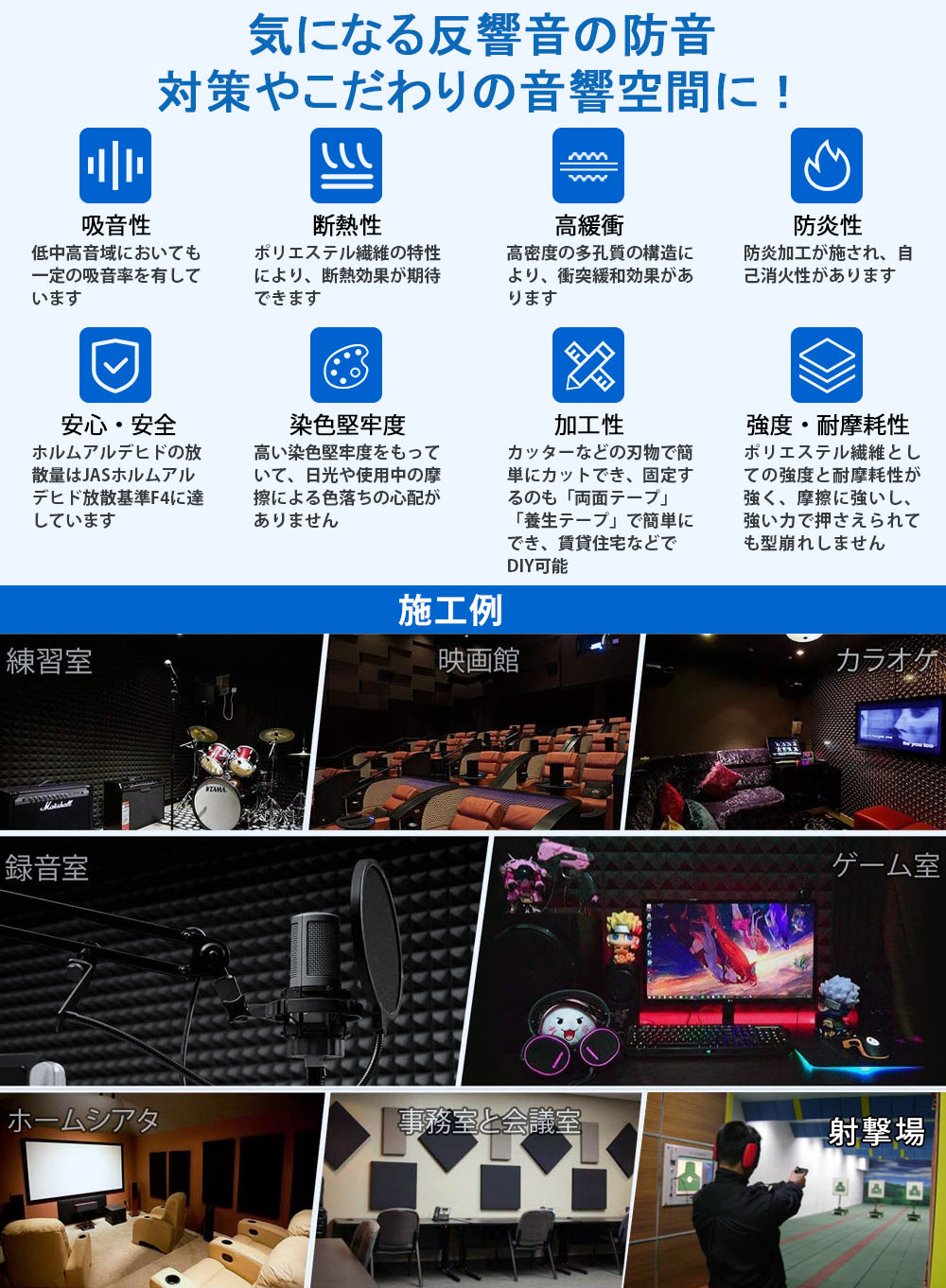 1.プロフェッショナルな音響制御、吸音、残響低減のために