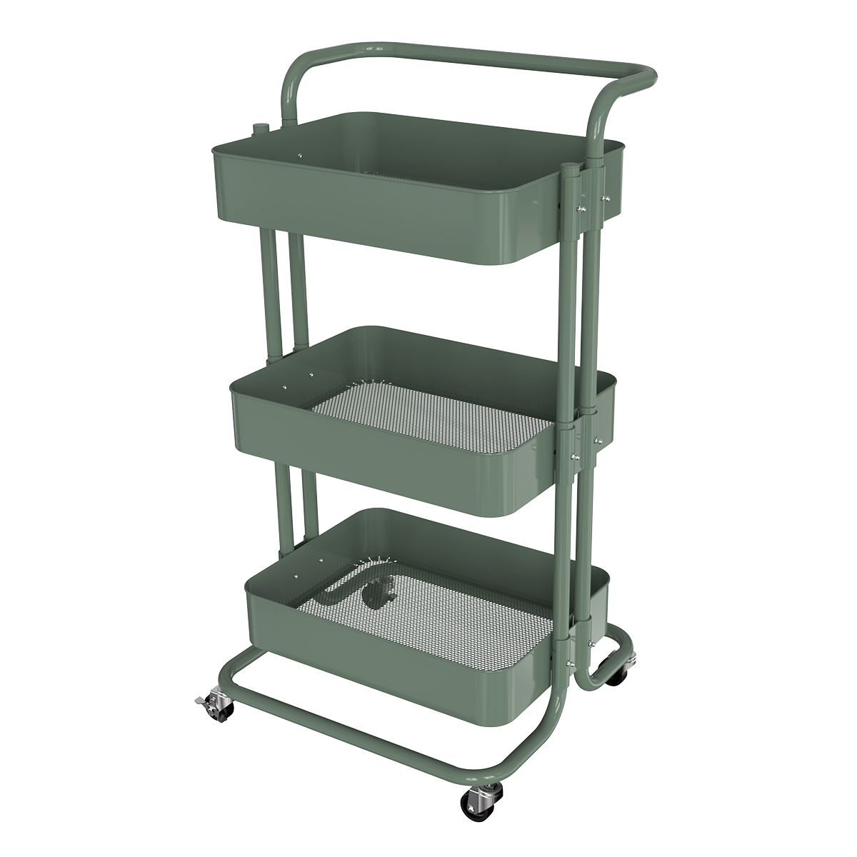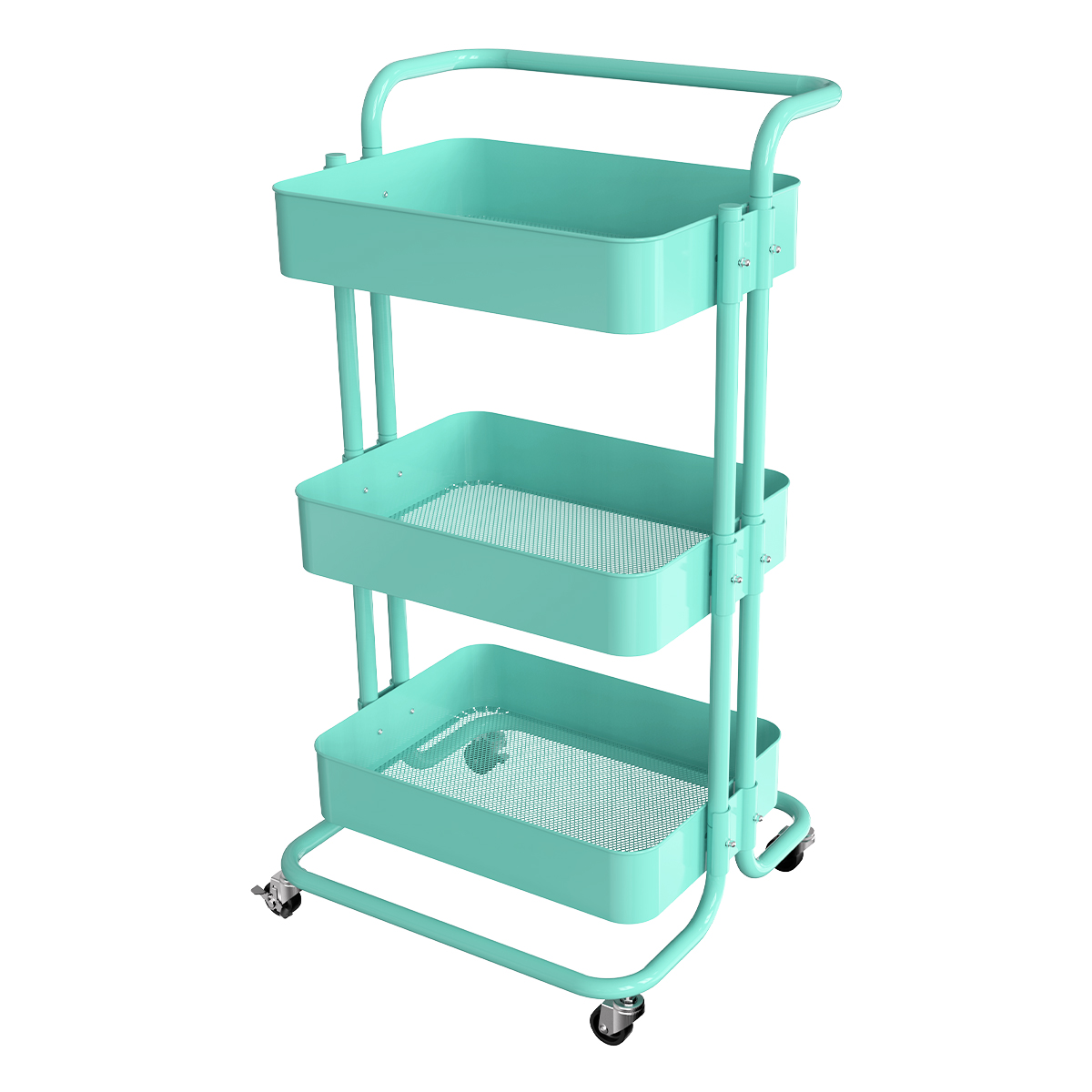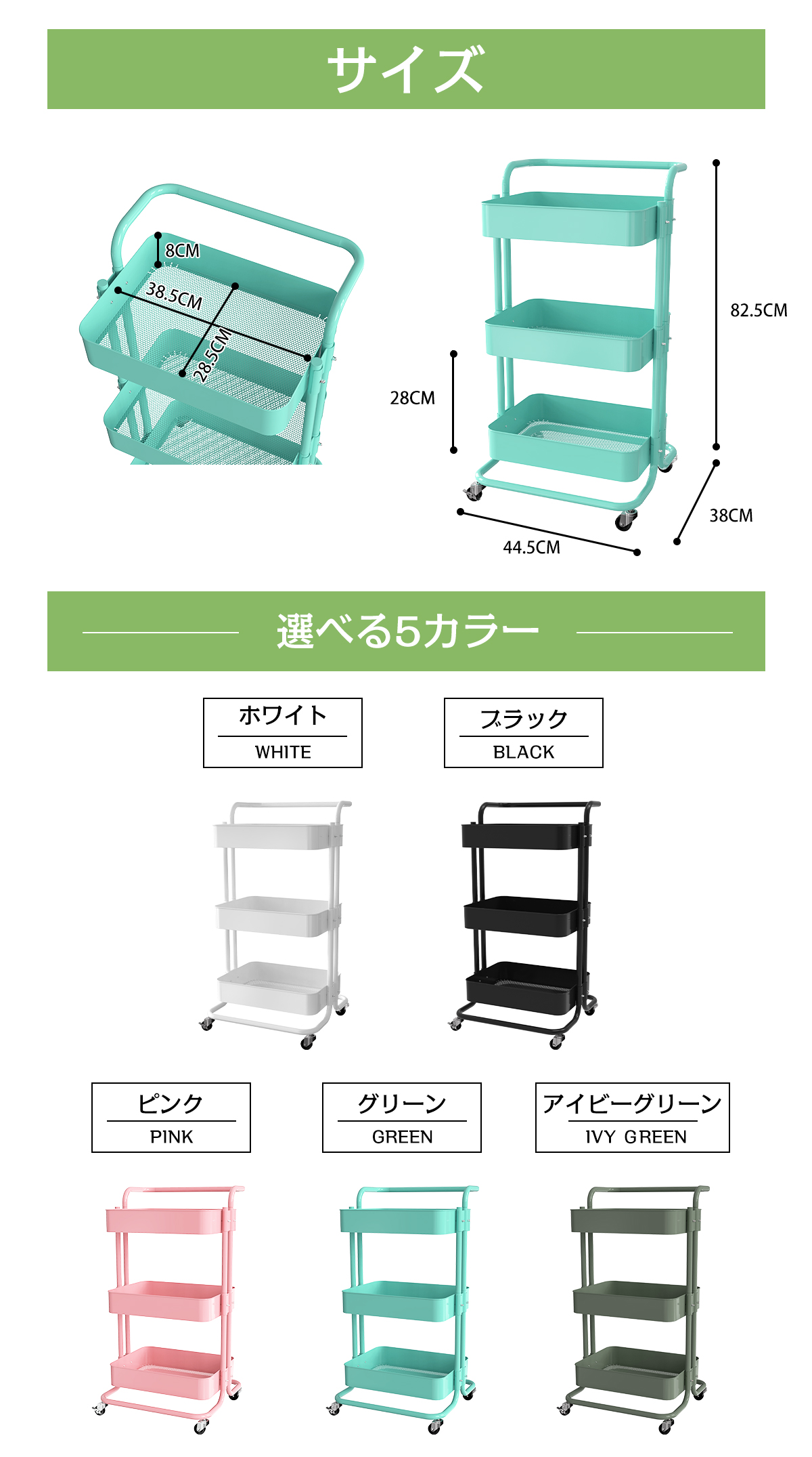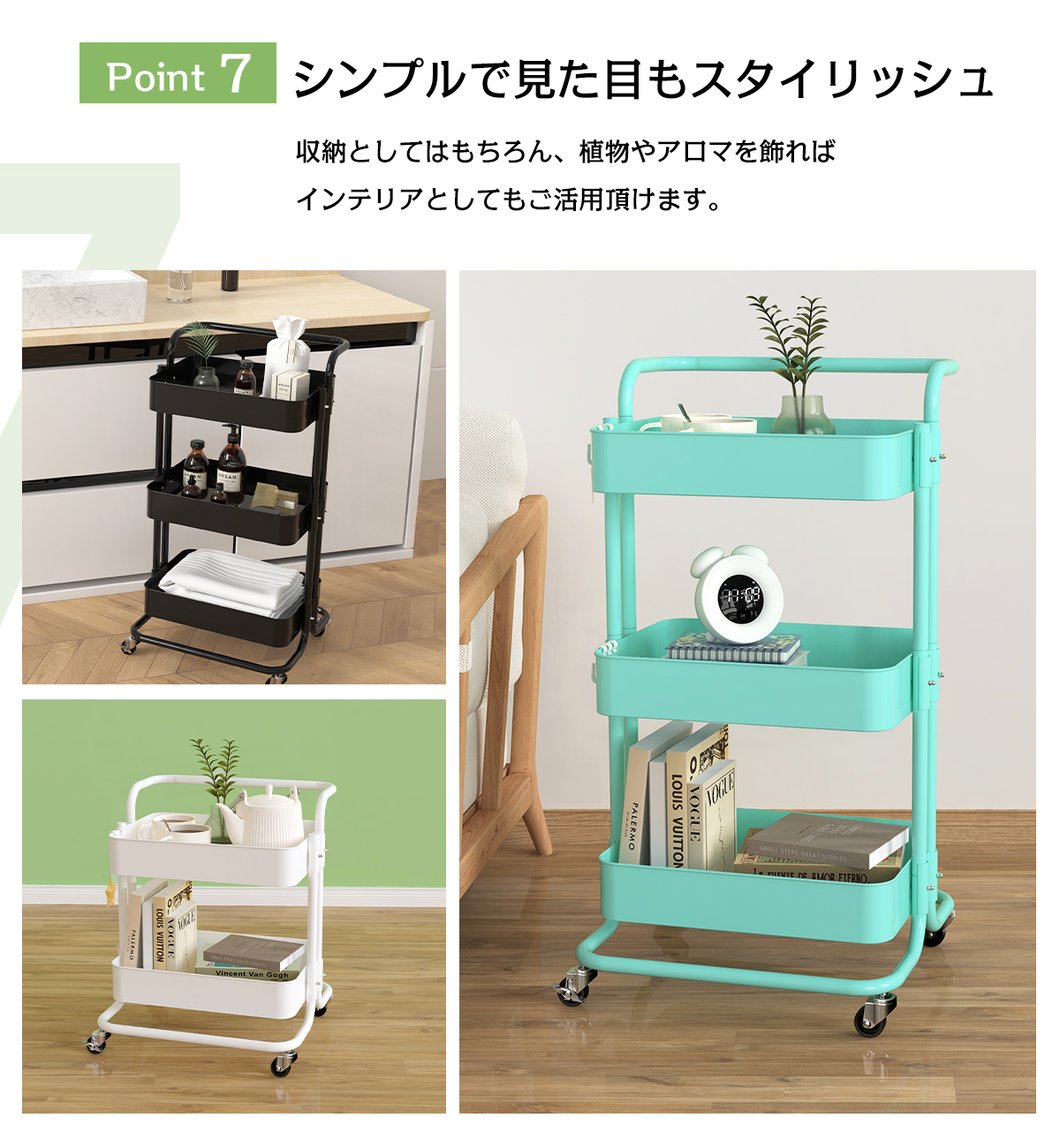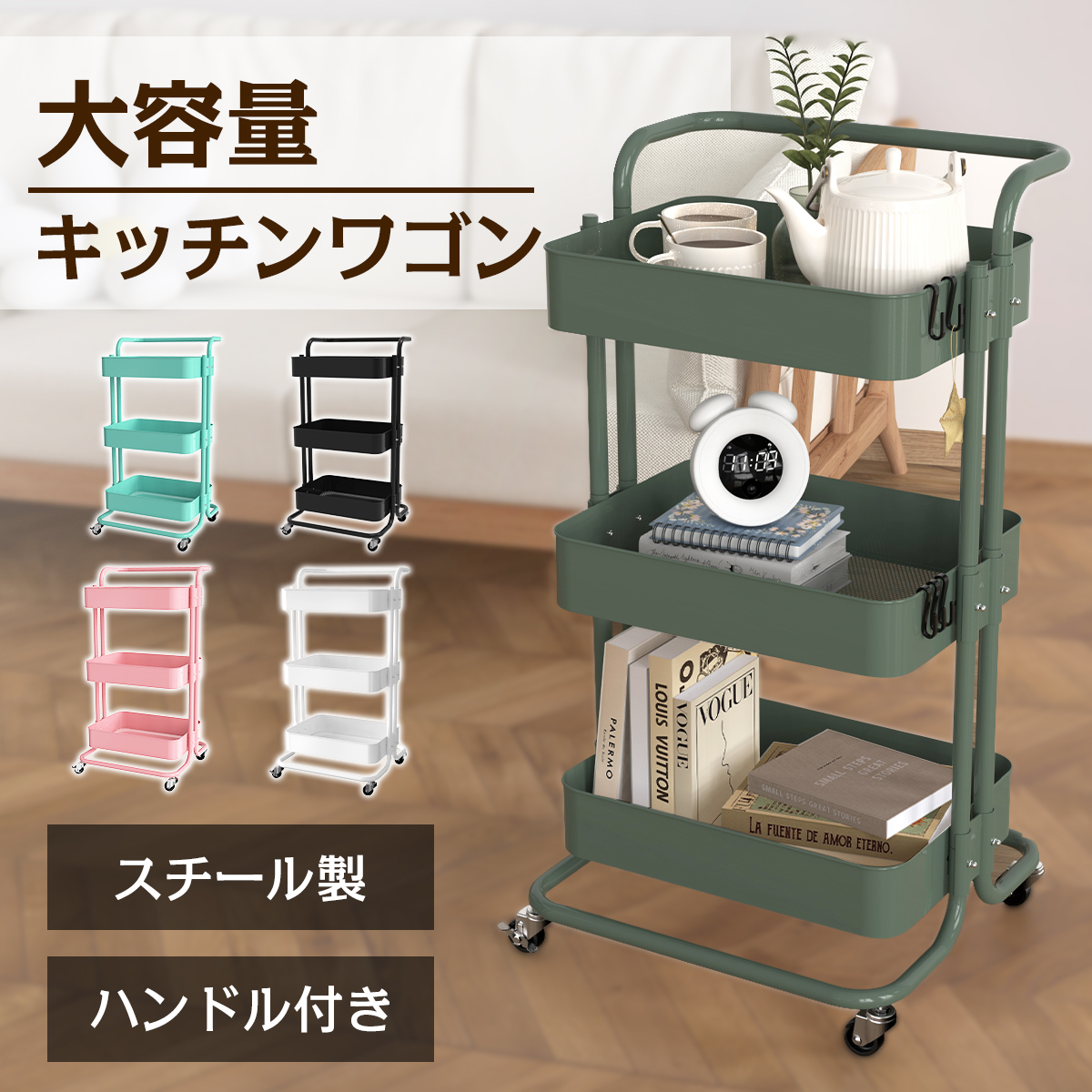 キッチンワゴン キャスター付き キッチン収納 ラック ハンドル付き 3段 360°可動 大容量 天板 スリム 組立簡単 インテリア