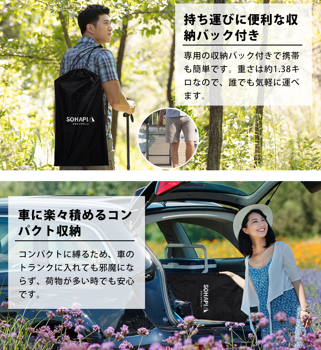 ワンステップで組み立てられるので、とても便利です。コンパクトに折りたたむことができ、車中に常に載せておいても邪魔にもならず、いざと言う時に必ず役立ちます。専用の収納袋は手持ちでも、手提げでもいいです、簡単に保管できます。サイドには便利な持ち手が付き、持ち運びに便利です。折りたたむと厚さは2.5 cmとコンパクトに収納できます。日常生活のニーズに合わせた使い方ができます。
