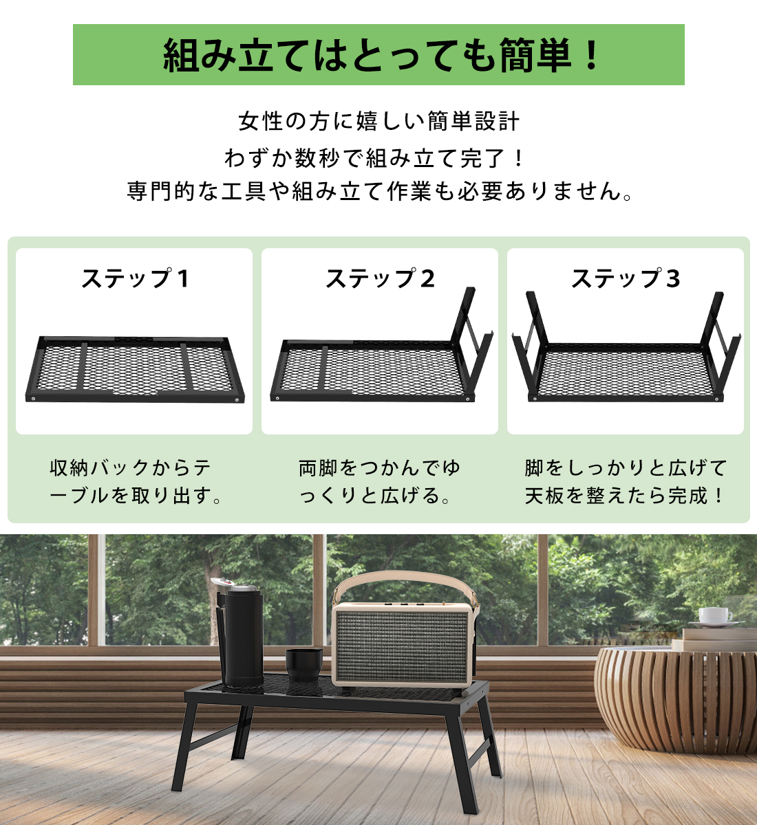 【3秒で簡単組み立て&コンパクト収納】