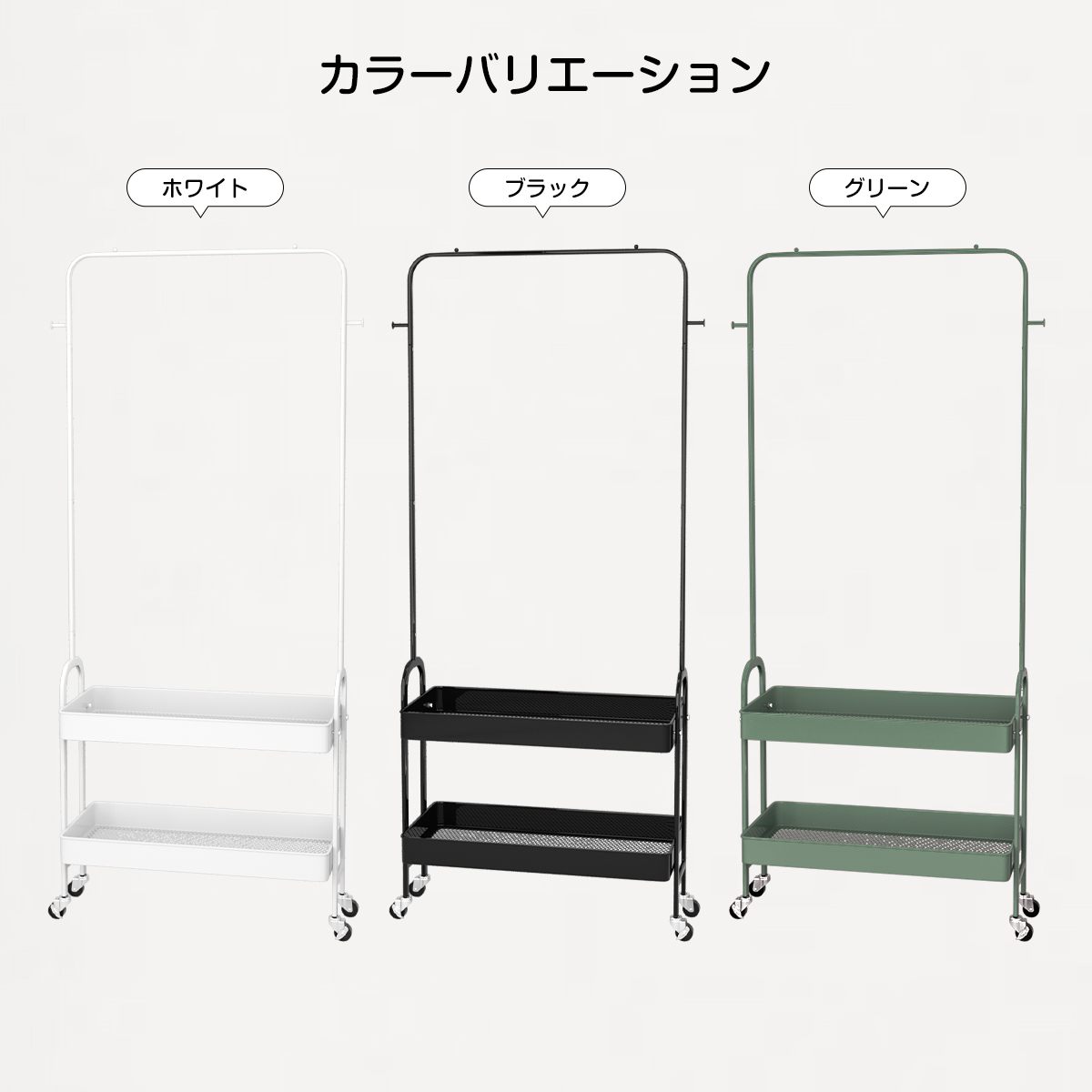 マルチハンガーラック ハンガーラック 幅68cm 2段メッシュカゴ キャスター付 ホワイト ブラック スチール製 収納ラック 衣類 小物整理 省スペース 寝室 玄関