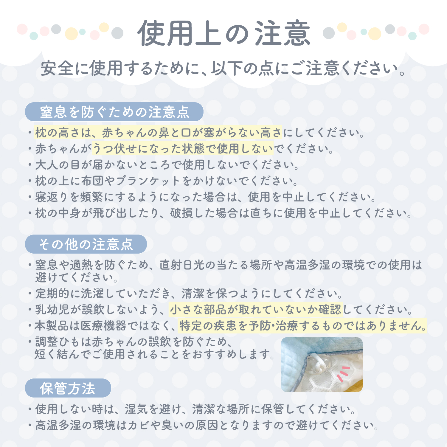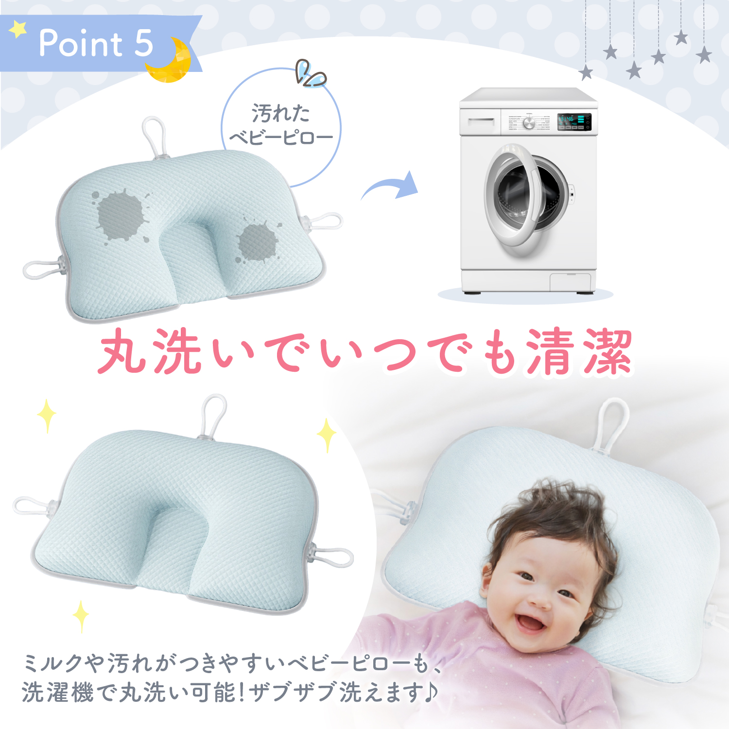 赤ちゃんは寝てるときにたくさん汗をかくので、お手入れも簡単なものを選びたいですよね。 また、吐き戻しなど枕の中まで汚れが届く事も.... そんなお悩みもご自宅で丸洗いできるから解決します。