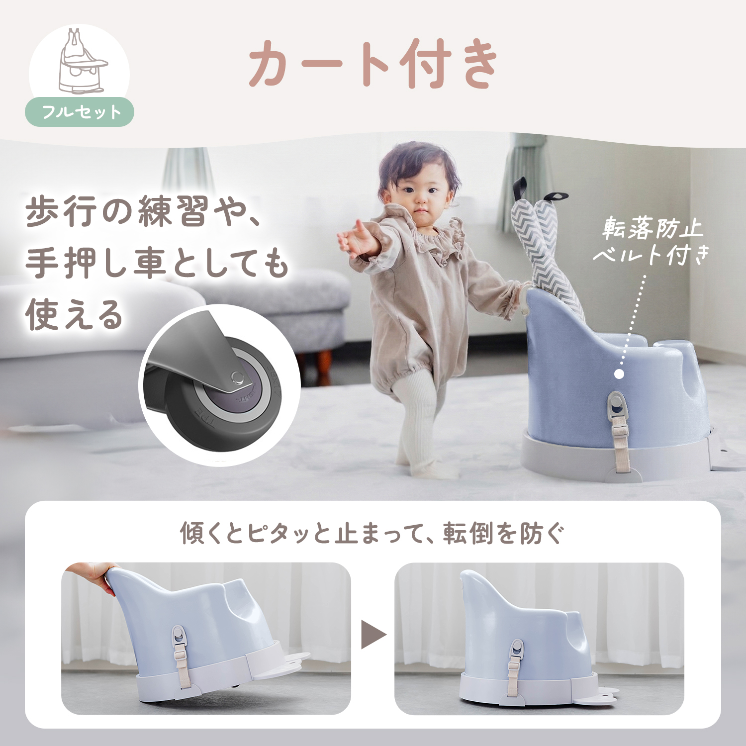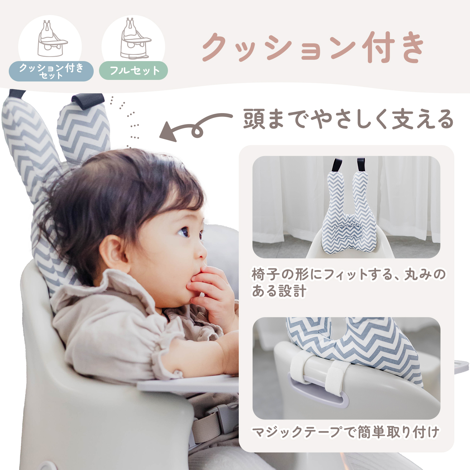 赤ちゃんの体の形に合わせた立体フォルムで、座ったときの姿勢をやさしくサポート。背中からおしりまで自然にフィットし、安定した座り姿勢を保ちやすい設計です。太もも部分にはゆとりを持たせているため、窮屈になりにくく、赤ちゃんも快適に過ごせます。