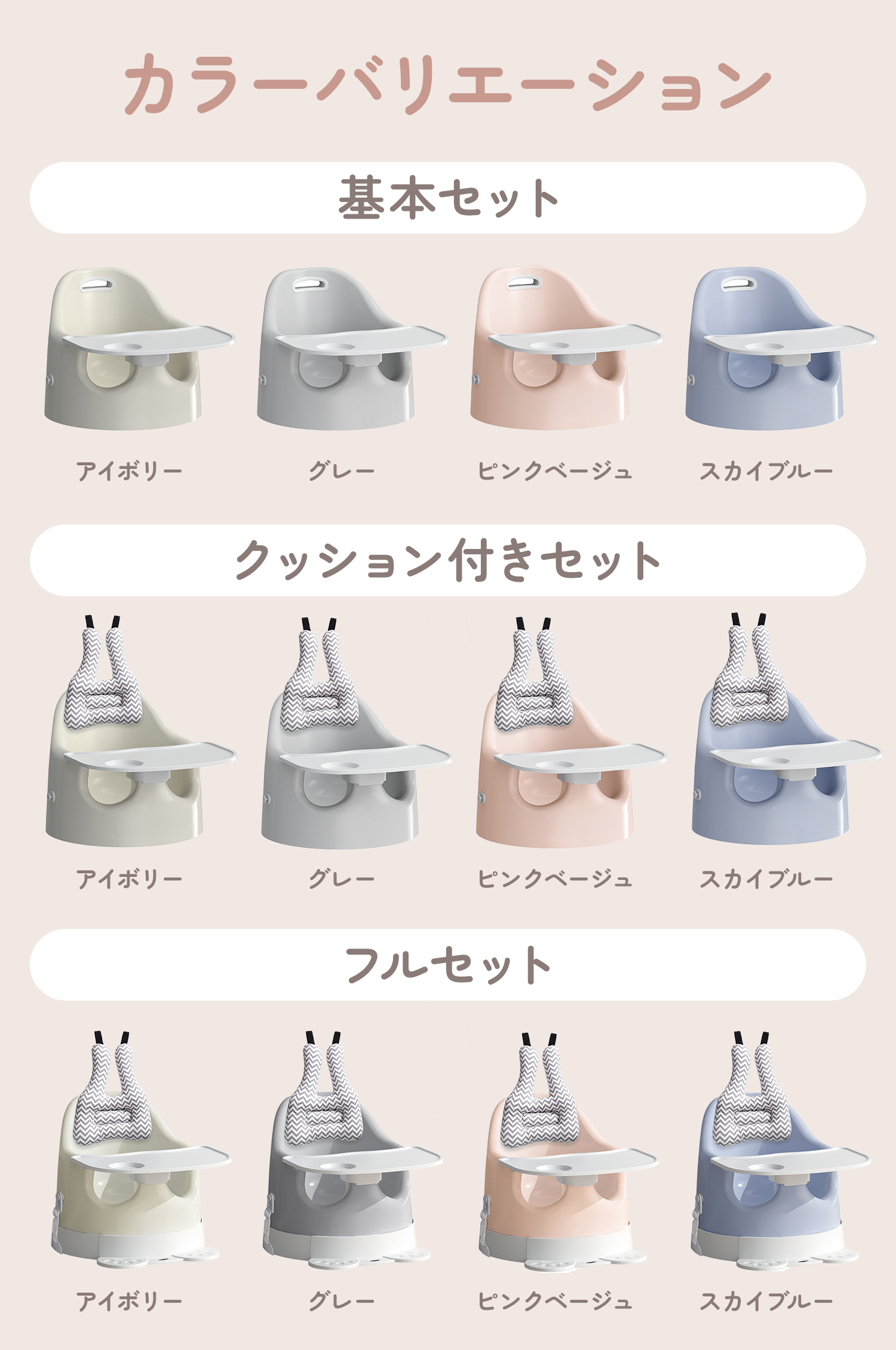 アイボリー/グレー/ピンクベージュ/スカイブルー