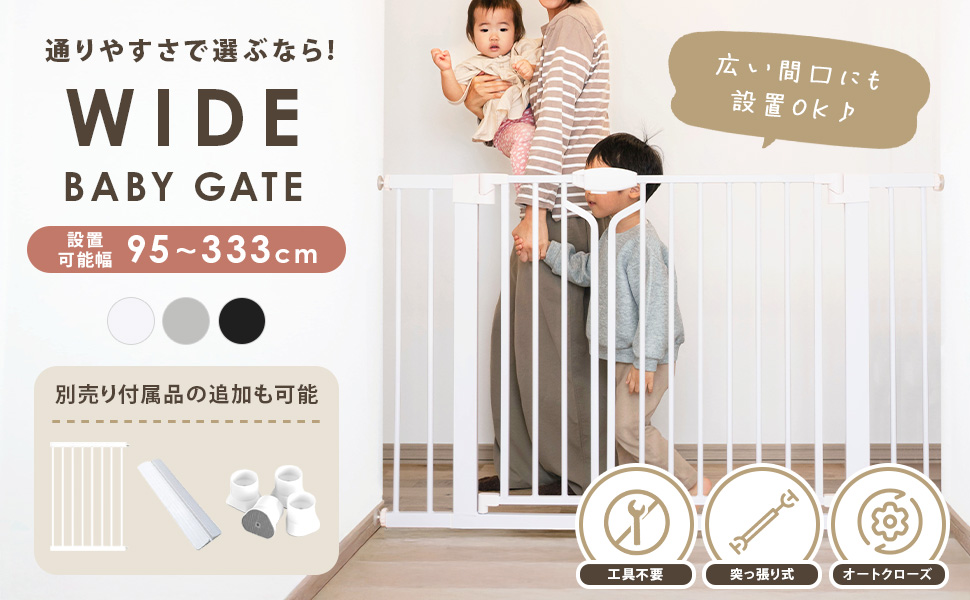 左右の扉が開閉可能で通りやすい!拡張フレームで【61cm〜390cm】迄対応