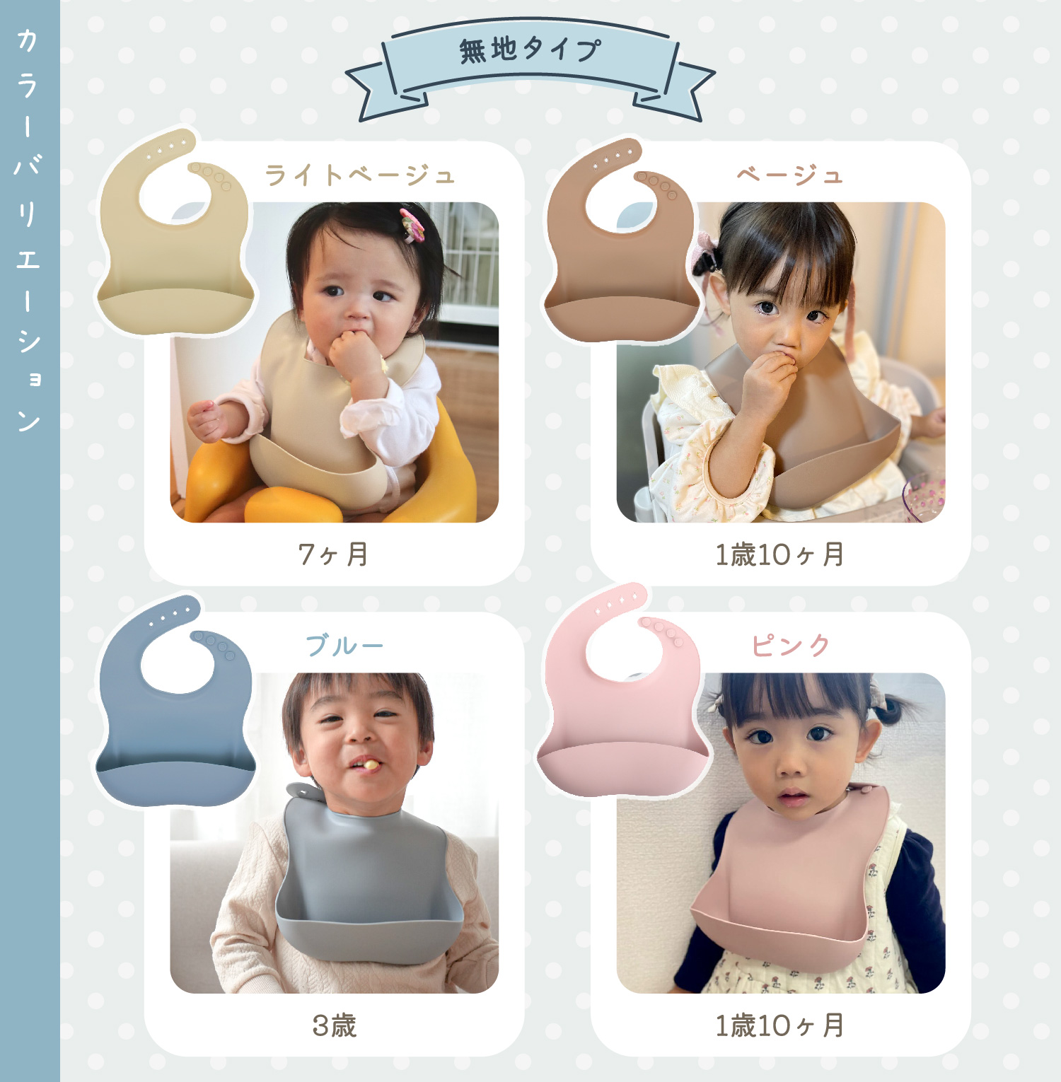 毎日のご飯やおやつの時間に便利な食事用のシリコンビブ。離乳食を始めたばかりの乳幼児をはじめ、手づかみ食べができるようになってきたお子様の、食事中の食べこぼしをしっかりキャッチします。