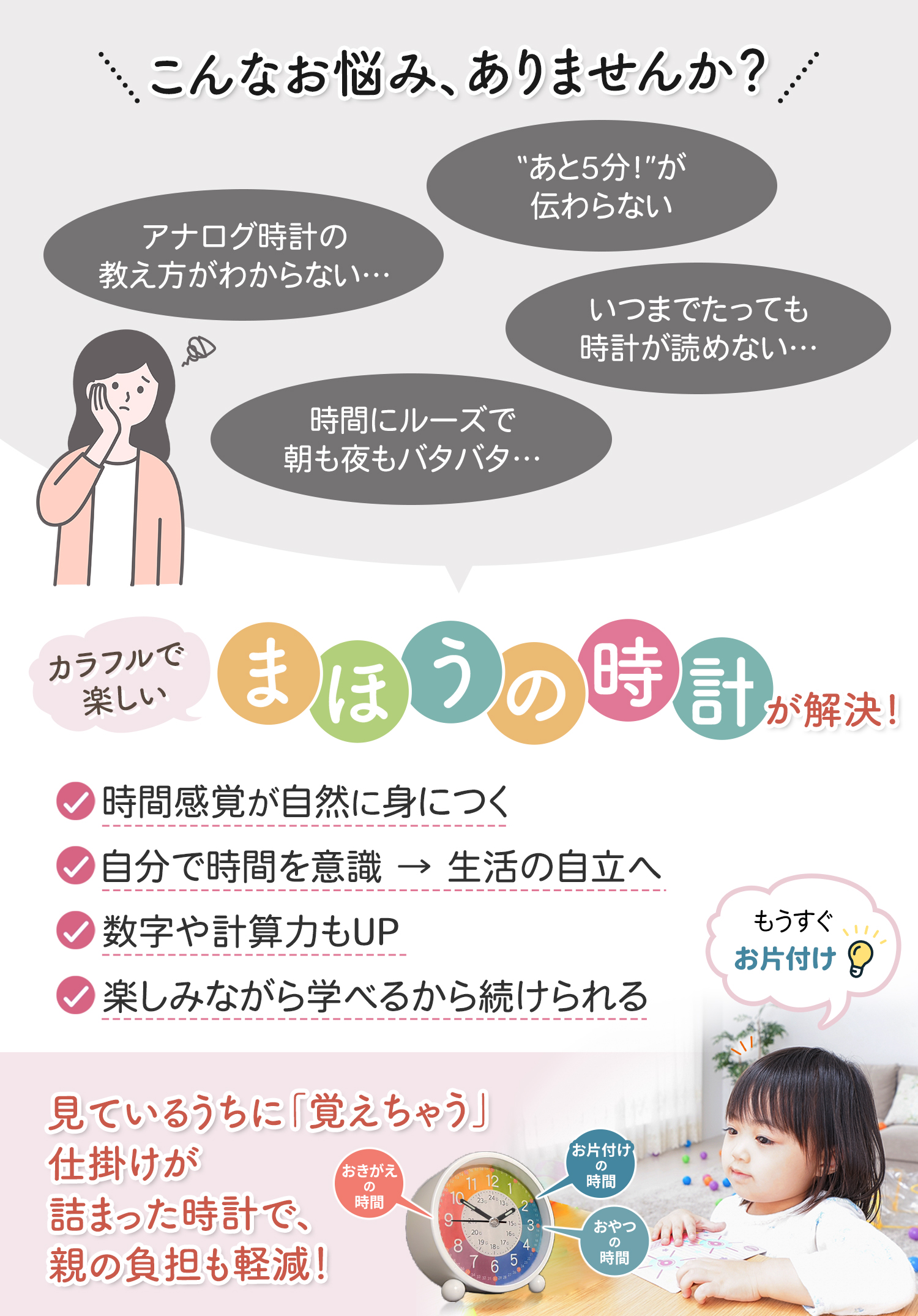 【時間のよみ方を楽しく学べる知育時計】