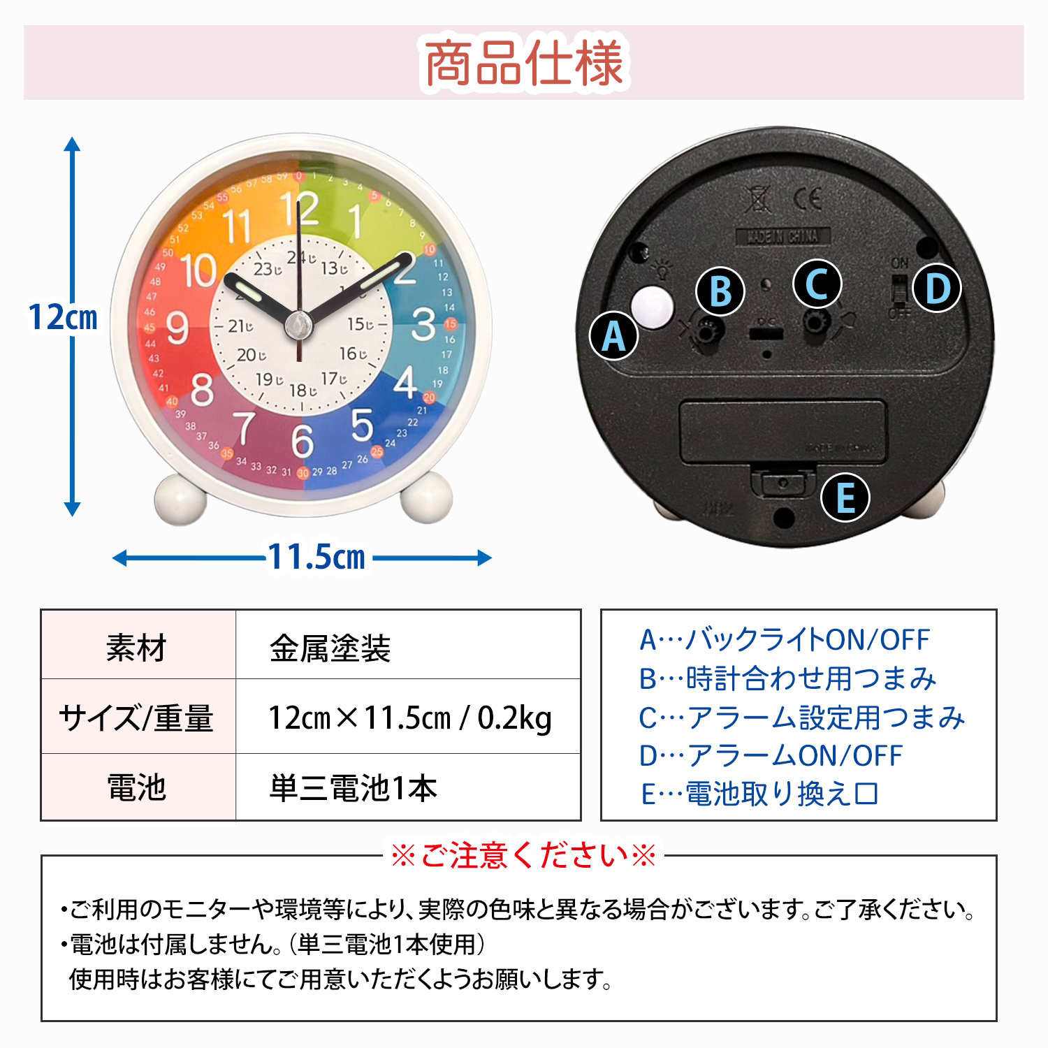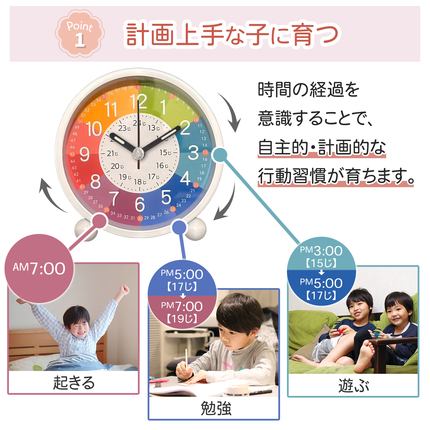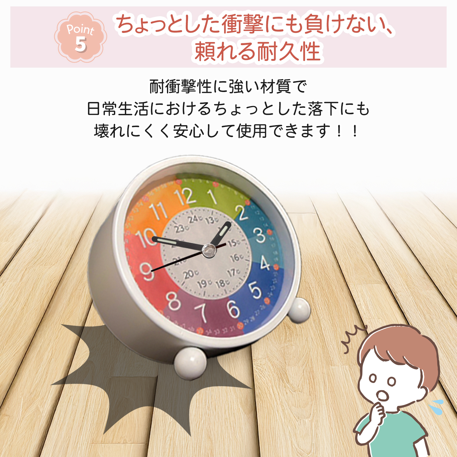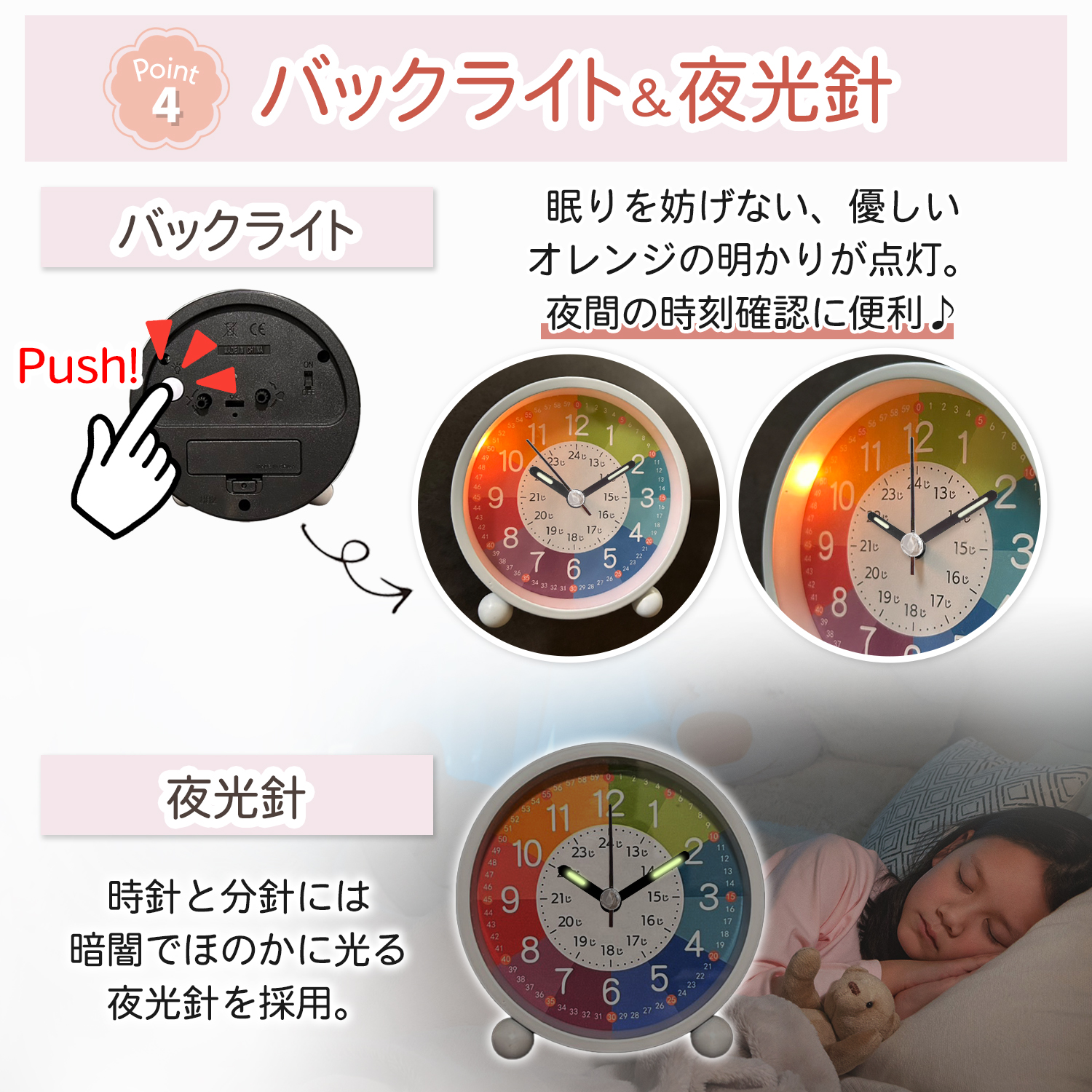 知育時計 置き時計 子供 こども 目覚まし時計 おしゃれ 非電波 時間学習 キッズ スタンド アナログ 静音 知育玩具 入園祝い プレゼント ライト 子ども