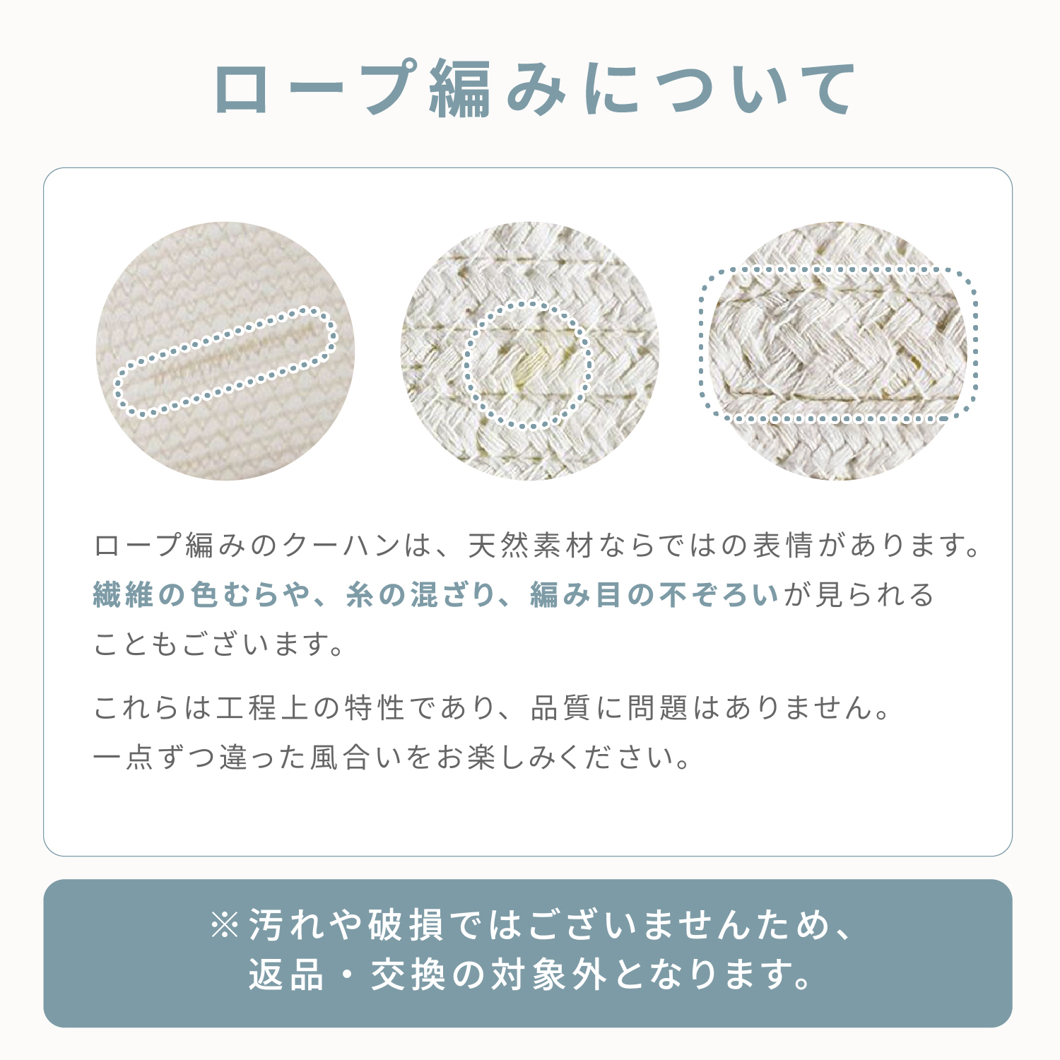 ロープ編みタイプで表面が滑らかなので、赤ちゃんの手足を傷つける心配もありません。